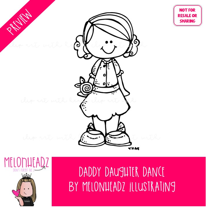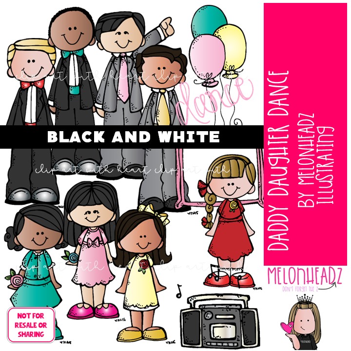Daddy Daughter Dance clip art BLACK AND WHITE: This illustrated set contains all of the clip art images as shown in the preview picture. BLACK AND WHITE illustrations included.
