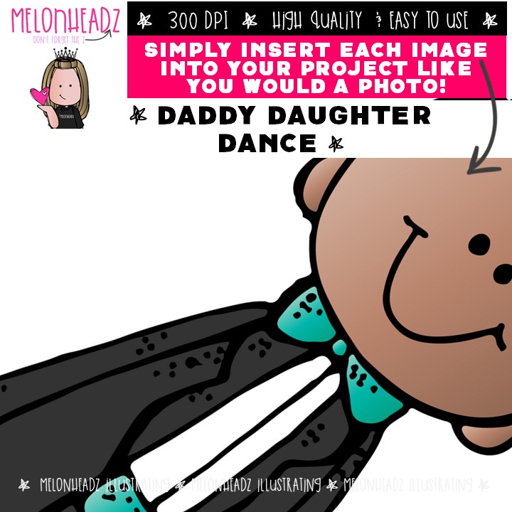 Daddy Daughter Dance clip art, celebration, balloons COMBO PACK: This illustrated set contains all of the clip art images as shown in the preview picture. COLORED and BLACK AND WHITE illustrations included.