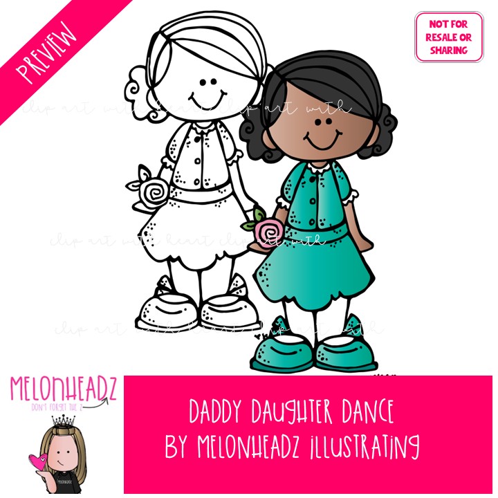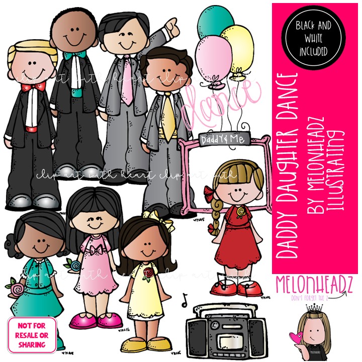 Daddy Daughter Dance clip art COMBO PACK: This illustrated set contains all of the clip art images as shown in the preview picture. COLORED and BLACK AND WHITE illustrations included.