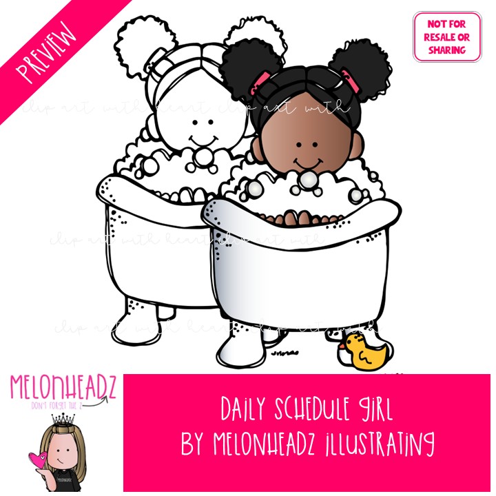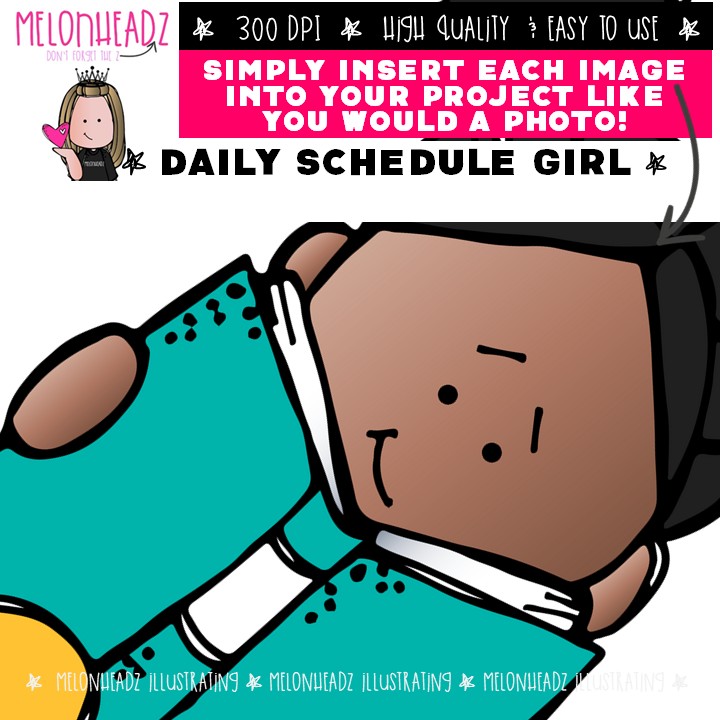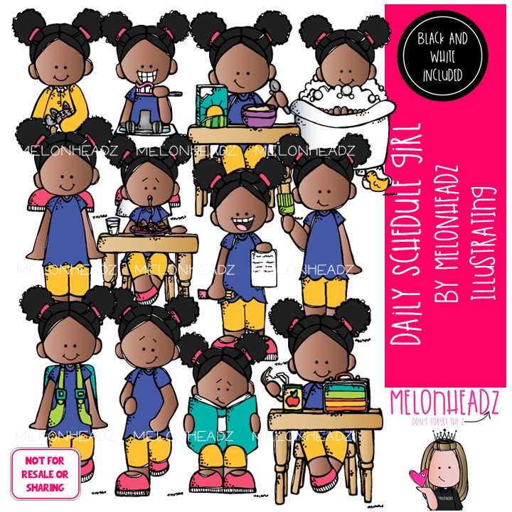 Daily Schedule clip art, girl, task, sequence COMBO PACK: This illustrated set contains all of the clip art images as shown in the preview picture. COLORED and BLACK AND WHITE illustrations included.
