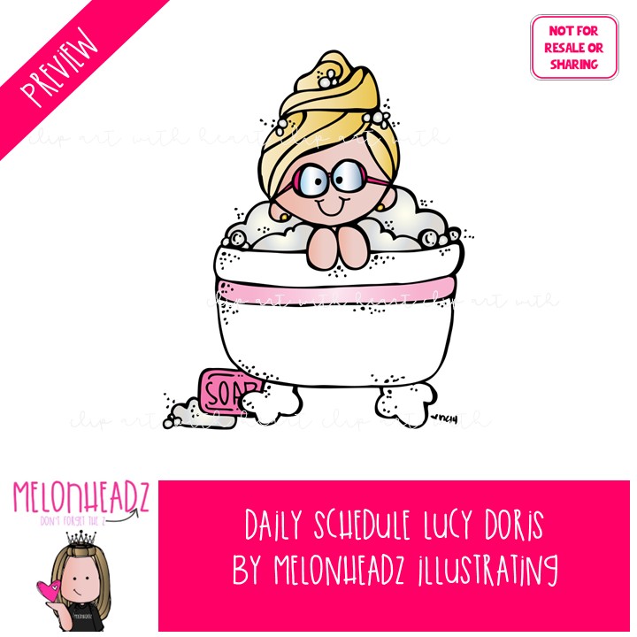 Daily Schedule clip art, Lucy Doris, Melonheadz Character COLORED Version