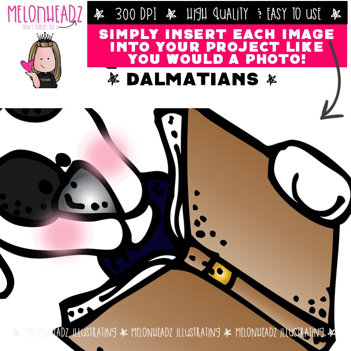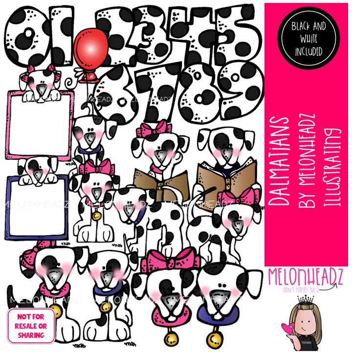 Dalmatians clip art, dog, pet, numbers COMBO PACK: This illustrated set contains all of the clip art images as shown in the preview picture. COLORED and BLACK AND WHITE illustrations included.