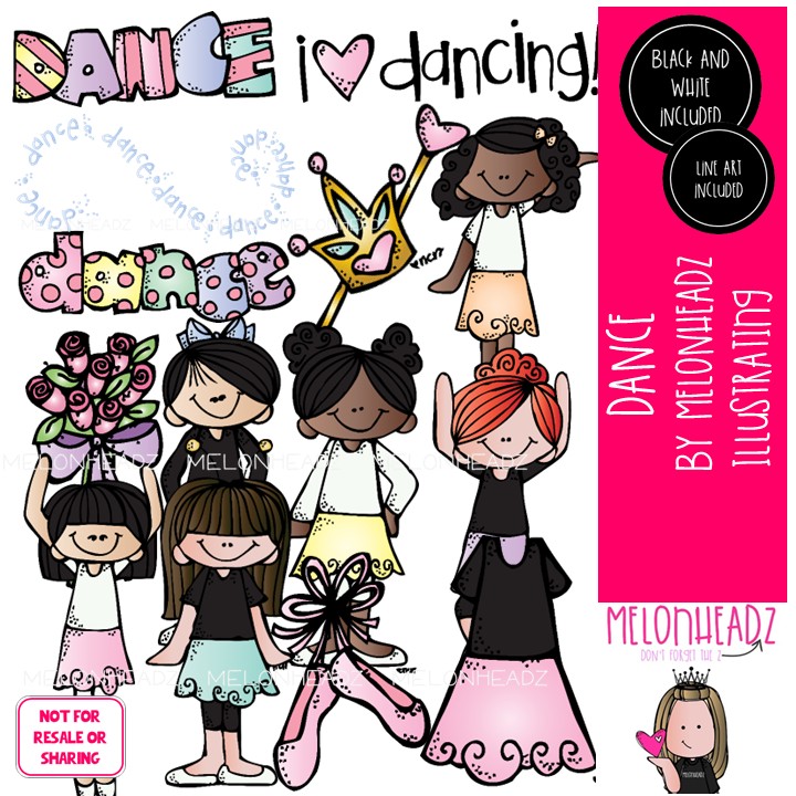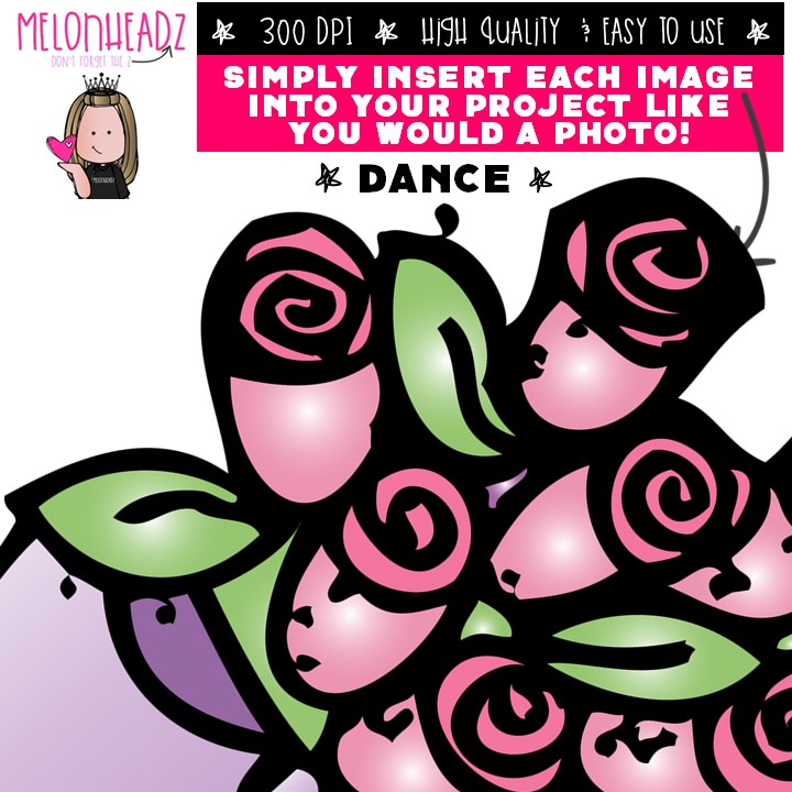 Dance clip art, ballet, bouquet COMBO PACK: This illustrated set contains all of the clip art images as shown in the preview picture. COLORED and LINE ART and BLACK AND WHITE illustrations included.