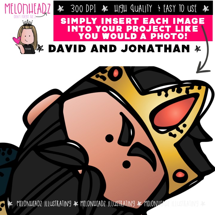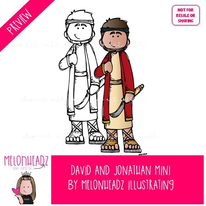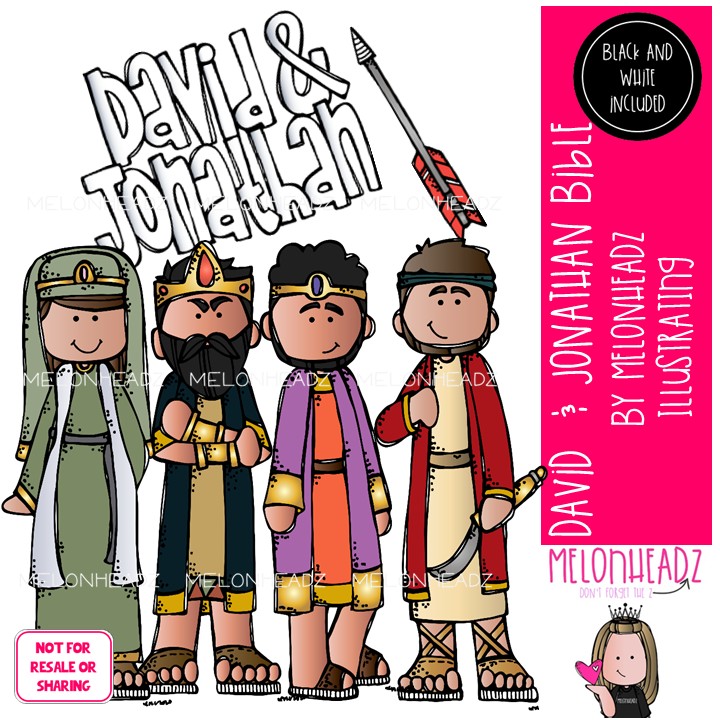 David and Jonathan clip art, Bible Mini: This illustrated set contains all of the clip art images as shown in the preview picture. COLORED and BLACK AND WHITE illustrations included.