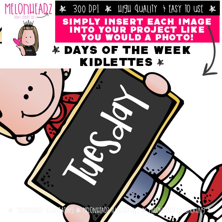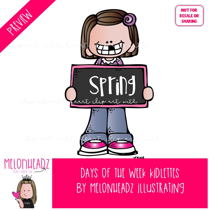 Days of the week clip art, Kidlettes, Seasons COLORED Version: This illustrated set contains all of the clip art images as shown in the preview picture. COLORED illustrations included.