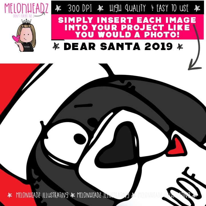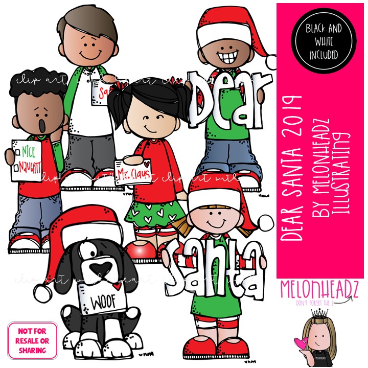 Dear Santa clip art 2019. Santa Letter clip art, Christmas clip art Mini: This illustrated set contains all of the clip art images as shown in the preview picture. COLORED and BLACK AND WHITE  illustrations included.