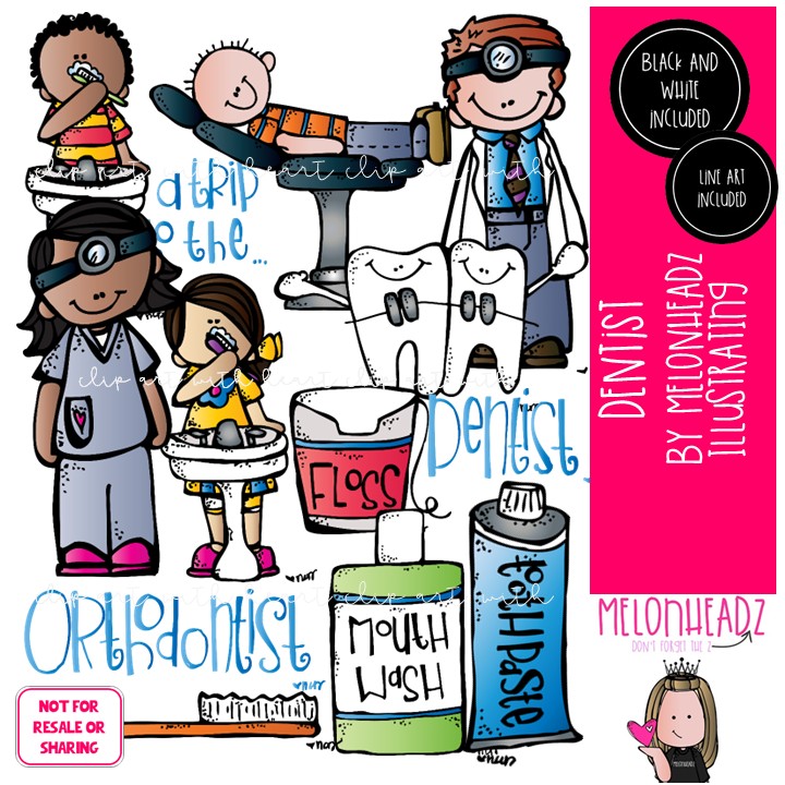 Dentist clip art, dental assistant, hygiene, career COMBO PACK: This illustrated set contains all of the clip art images as shown in the preview picture. COLORED, BLACK AND WHITE and LINE ART illustrations included.