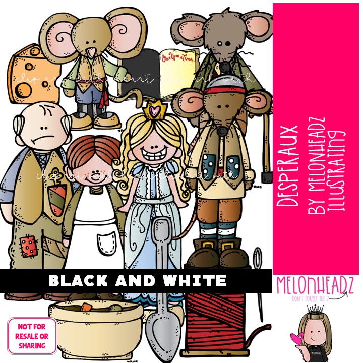Desperaux clip art Literature clip art Mouse clip art Book Companion clip art BLACK AND WHITE: This illustrated set contains all of the clip art images as shown in the preview picture. BLACK AND WHITE  illustrations included.