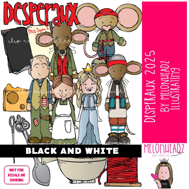 Desperaux clip art 2025 Literature clip art Mouse clip art Book Companion clip art BLACK AND WHITE: This illustrated set contains all of the clip art images as shown in the preview picture. BLACK AND WHITE illustrations only.