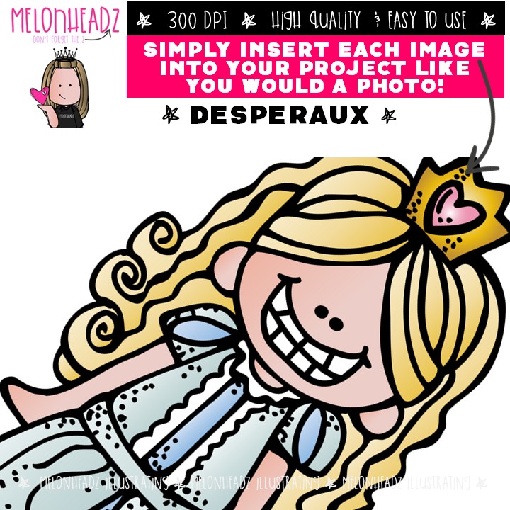 Desperaux clip art, Literature, Mouse, Book Companion COMBO PACK: This illustrated set contains all of the clip art images as shown in the preview picture. COLORED and BLACK AND WHITE illustrations included.