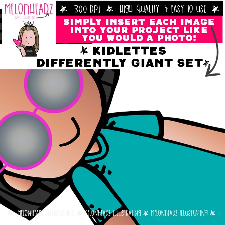 This illustrated set contains all of the clip art images as shown in the preview picture. COLORED and BLACK AND WHITE illustrations included. Each graphic is hand drawn by me (Nikki), and unique to Melonheadz.