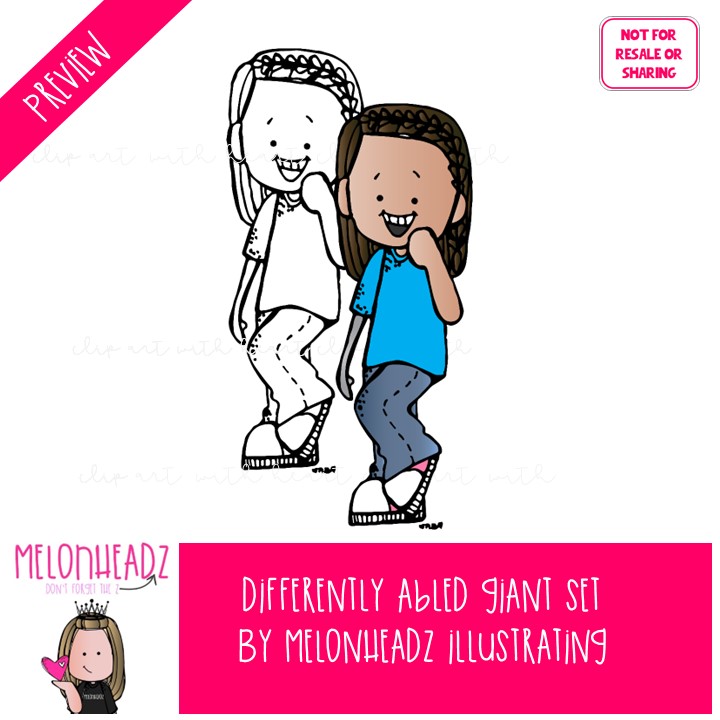 Differently Abled kidlette clip art, kid, wheelchair, blind GIANT set: This illustrated set contains all of the clip art images as shown in the preview picture. COLORED and BLACK AND WHITE illustrations included.