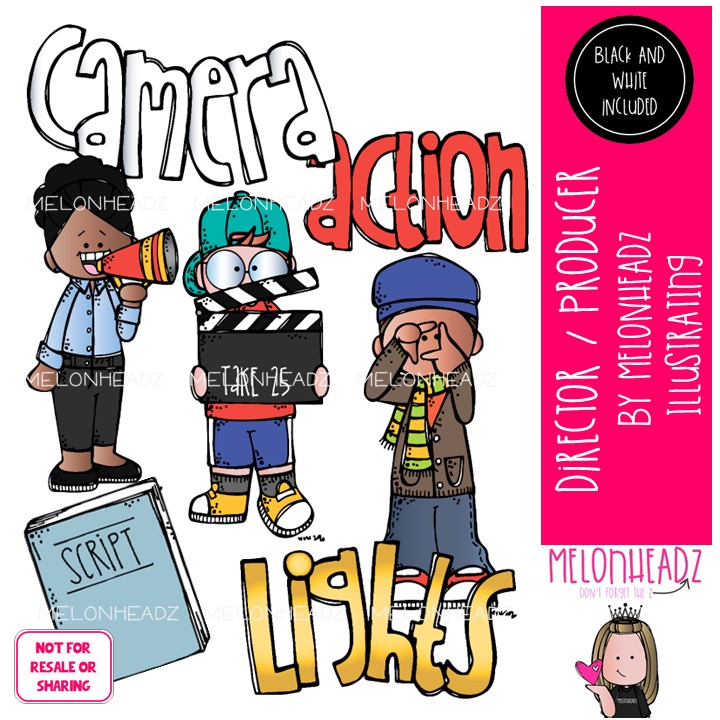 Director / Producer clip art, Movie, Television, Career Mini: This illustrated set contains all of the clip art images as shown in the preview picture. COLORED and BLACK AND WHITE illustrations included.