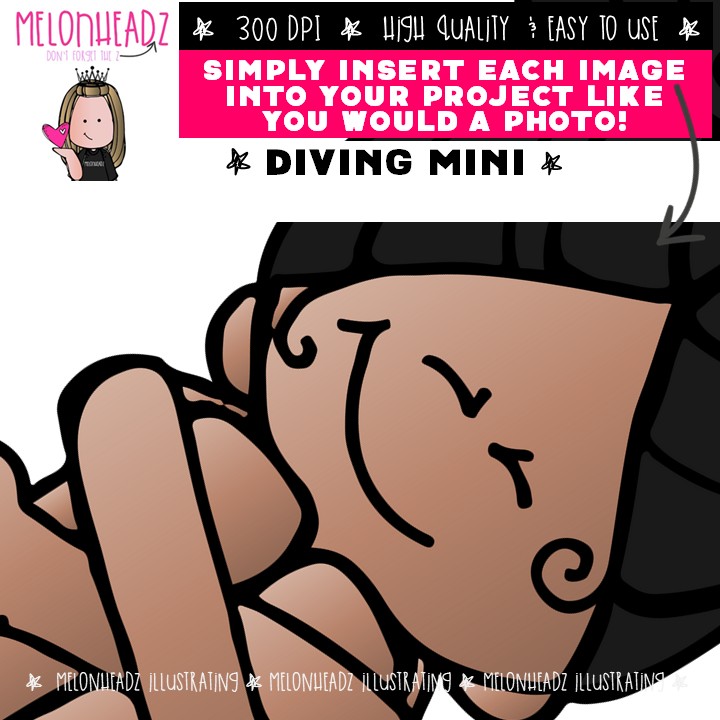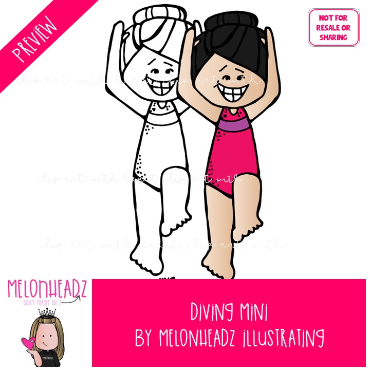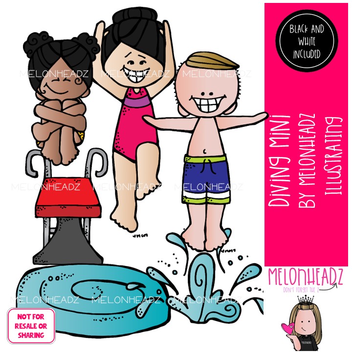 Diving clip art, sport, swimming Mini: This illustrated set contains all of the clip art images as shown in the preview picture. COLORED and BLACK AND WHITE illustrations included.