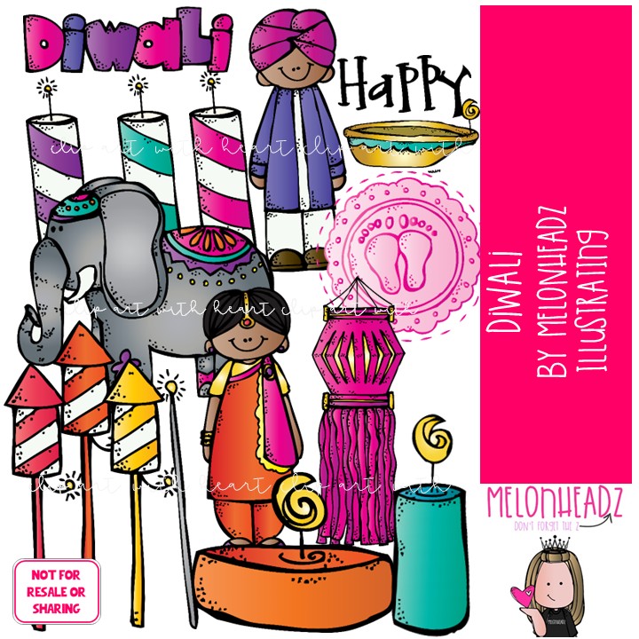 Diwali clip art, Deepavali clip art COLORED Version: This illustrated set contains all of the clip art images as shown in the preview picture. COLORED illustrations included.