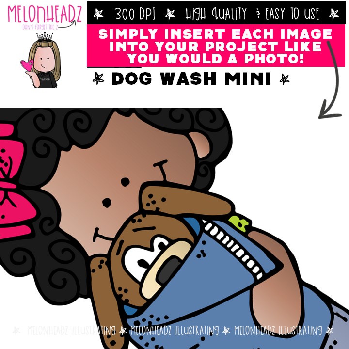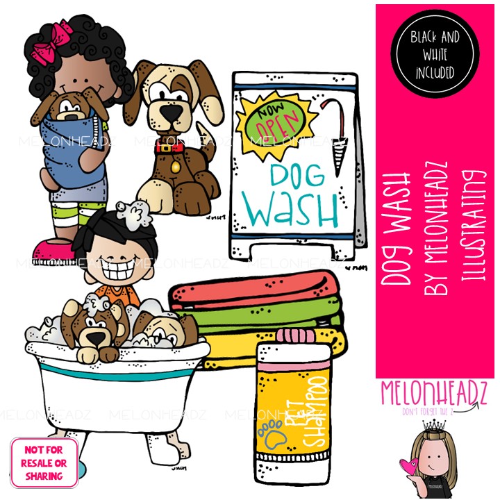 Dog Wash clip art, bath, pet, groomer Mini: This illustrated set contains all of the clip art images as shown in the preview picture. COLORED and BLACK AND WHITE illustrations included.