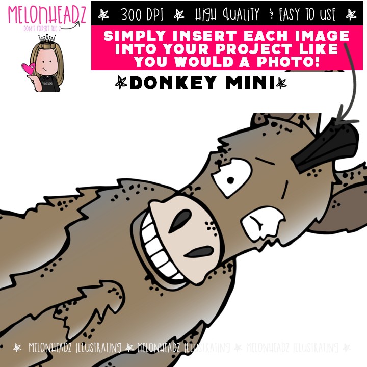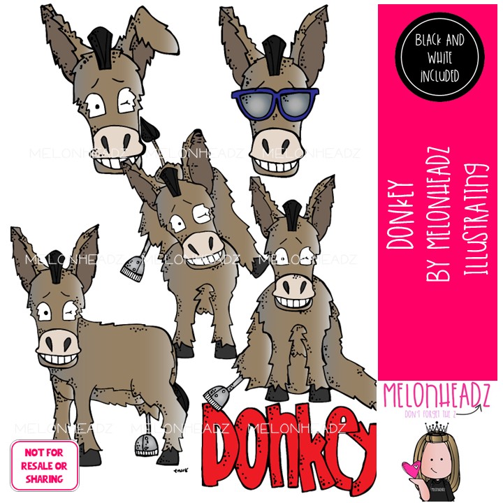 Donkey clip art, Literature, Book Companion Mini: This illustrated set contains all of the clip art images as shown in the preview picture. COLORED and BLACK AND WHITE illustrations included.