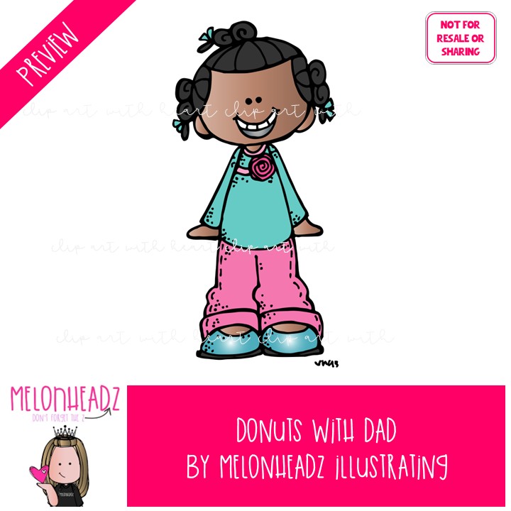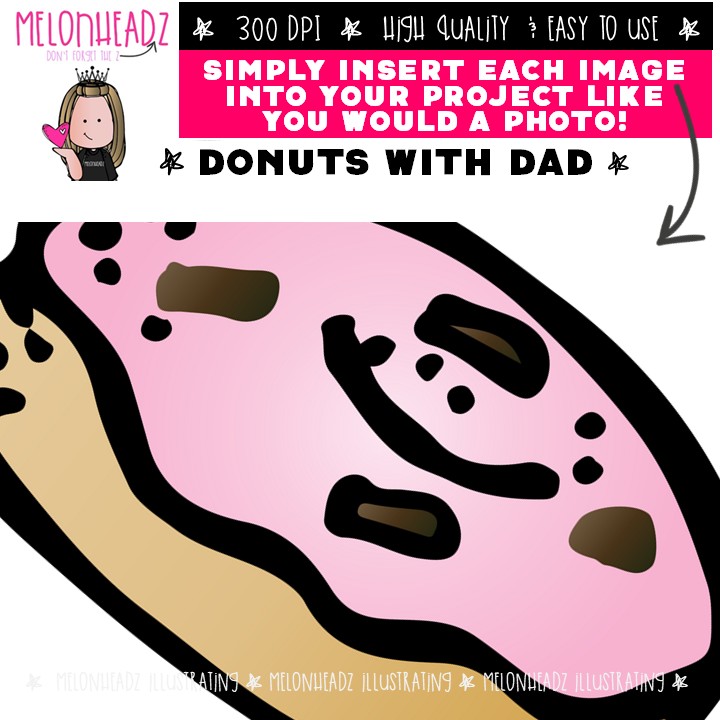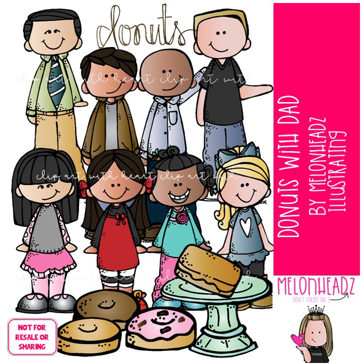 Dads with donuts clip art, daughter, school celebration COLORED Version: This illustrated set contains all of the clip art images as shown in the preview picture. COLORED illustrations included.