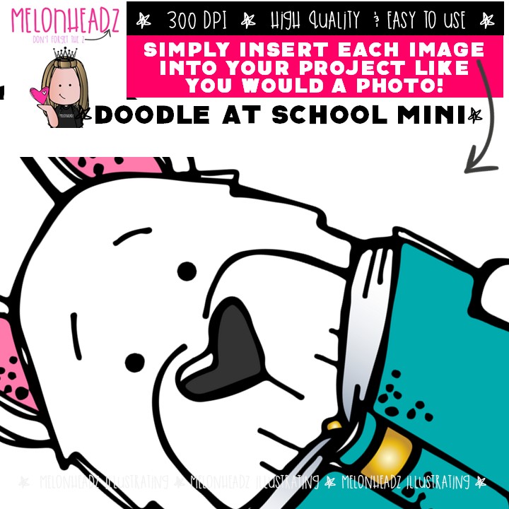 Doodle clip art, School, reading Mini: This illustrated set contains all of the clip art images as shown in the preview picture. COLORED and BLACK AND WHITE illustrations included.