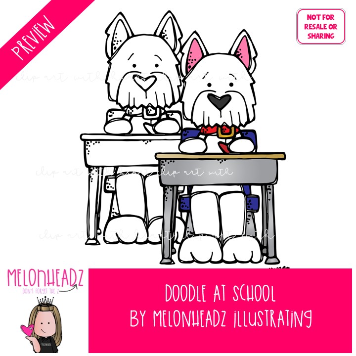 - 6 illustrations of Doodle at school