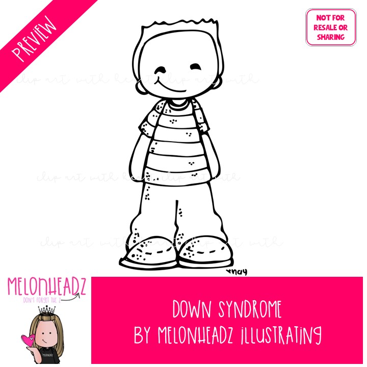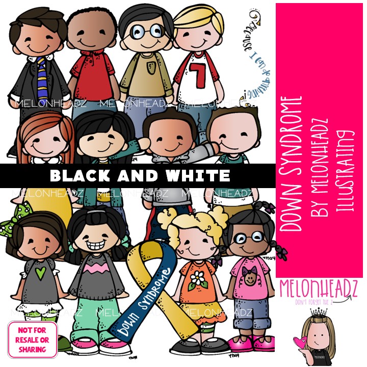 Down Syndrome clip art, differently abled BLACK AND WHITE: This illustrated set contains all of the clip art images as shown in the preview picture. BLACK AND WHITE illustrations included.