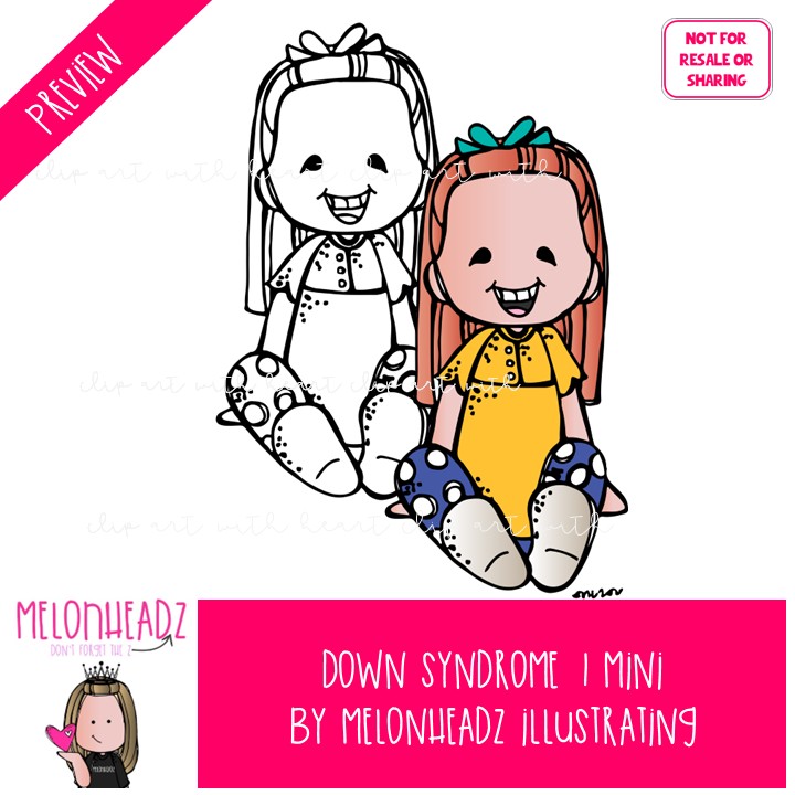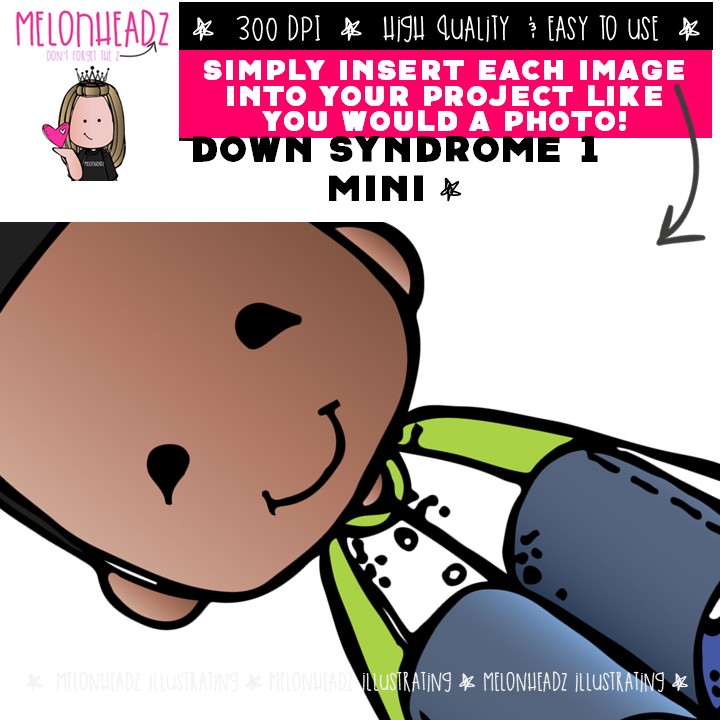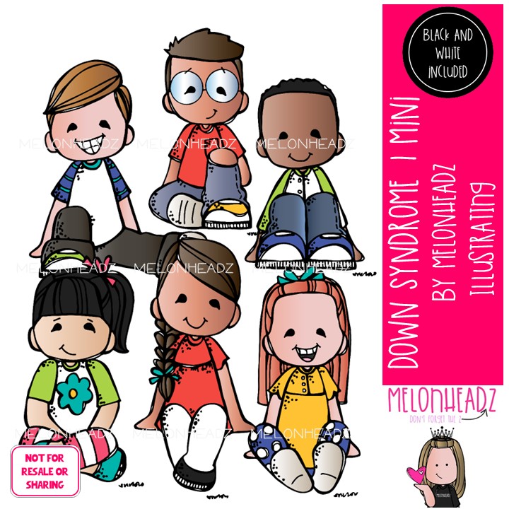 Downe Syndrome 1 clip art, Differently Abled Mini: This illustrated set contains all of the clip art images as shown in the preview picture. COLORED and BLACK AND WHITE illustrations included.