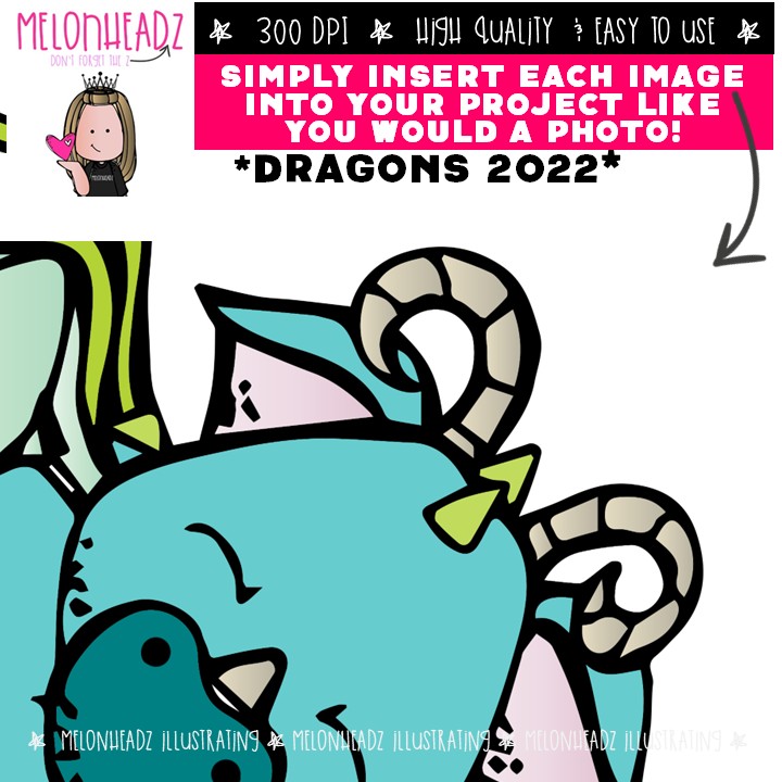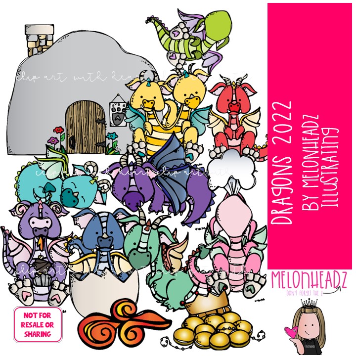 Dragons clip art 2022, cave, leviathan COLORED Version: This illustrated set contains all of the clip art images as shown in the preview picture. COLORED illustrations included.