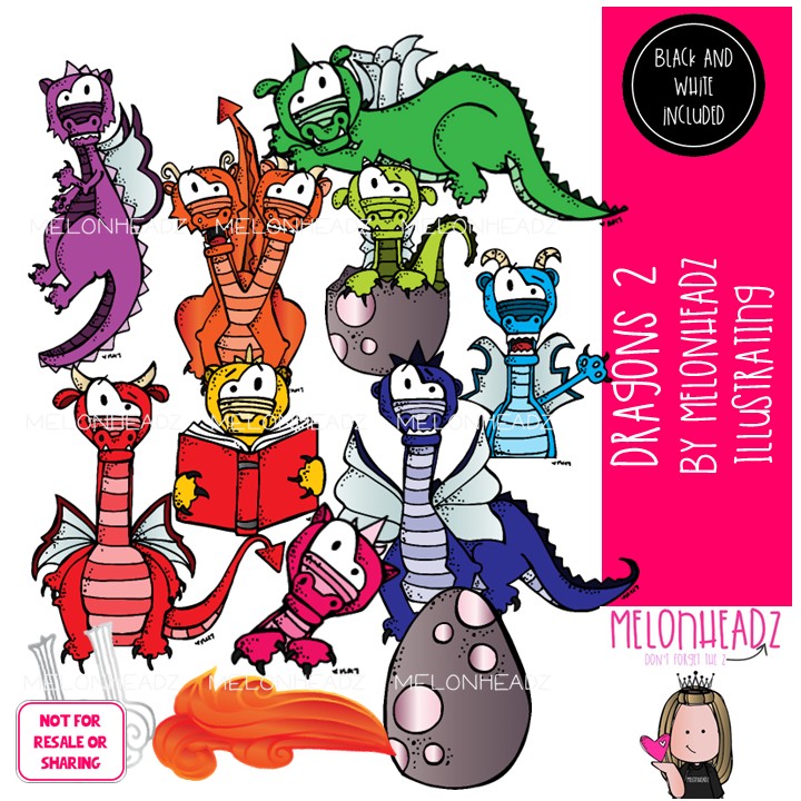 Dragons 2 clip art, leviathan, fantasy COMBO PACK: This illustrated set contains all of the clip art images as shown in the preview picture. COLORED and BLACK AND WHITE illustrations included.