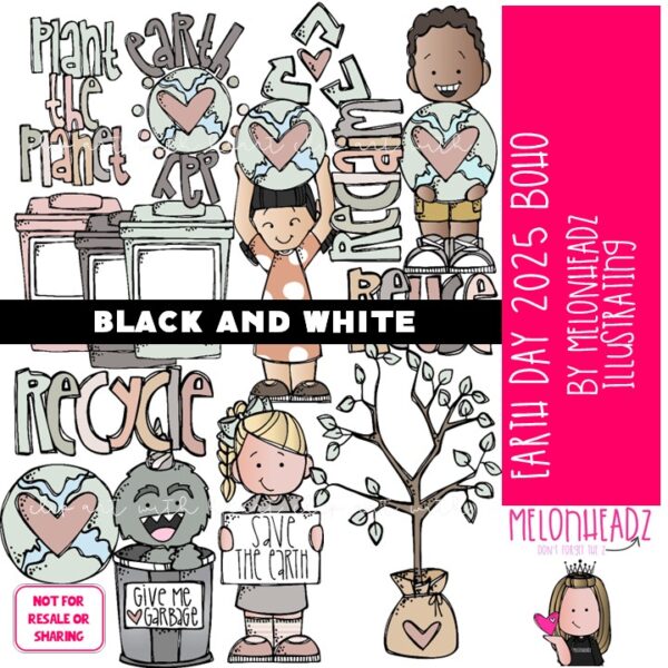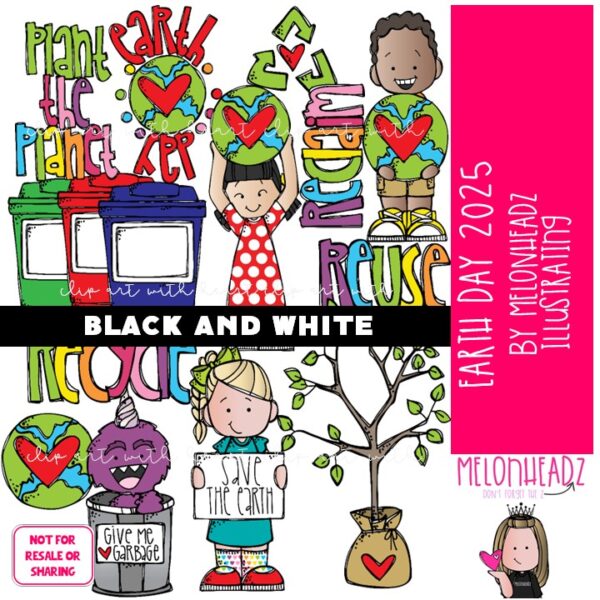 Earth Day clip art Recycling clip art Environmental Awareness Day clip art BLACK AND WHITE: This illustrated set contains all of the clip art images as shown in the preview picture. BLACK AND WHITE illustrations only.