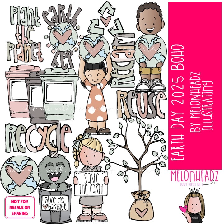Earth Day clip art 2025 Recycling clip art Environmental Awareness Day clip art COLORED Version BOHO
