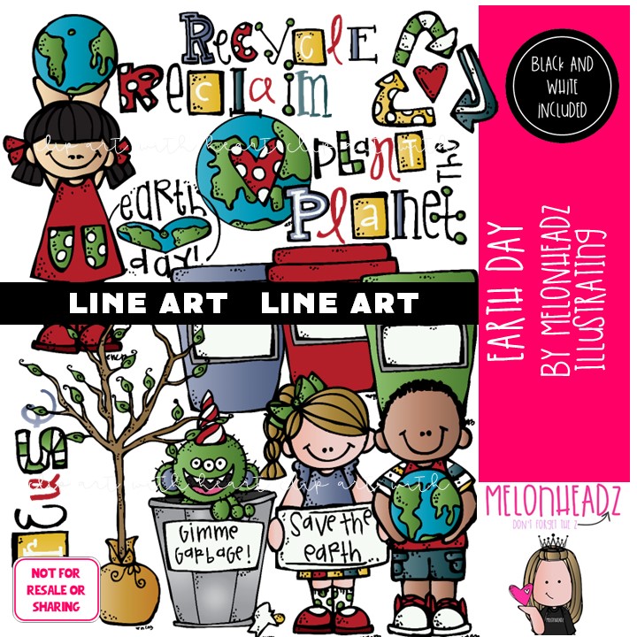 Earth Day clip art Recycling clip art Environmental Awareness Day clip art LINE ART and BLACK AND WHITE: This illustrated set contains all of the clip art images as shown in the preview picture. LINE ART and BLACK AND WHITE  illustrations included.