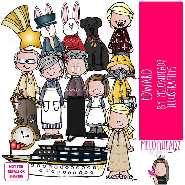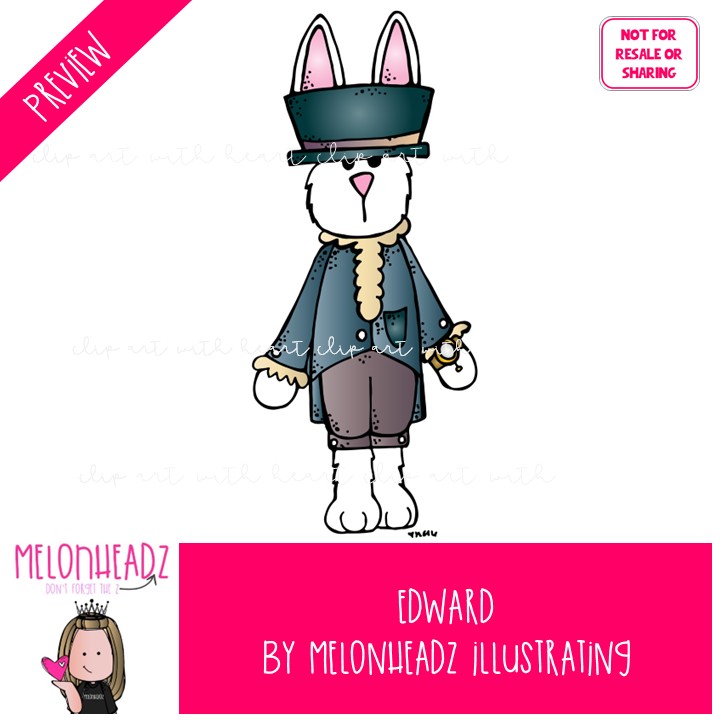 Edward clip art, rabbit, literature, book companion COLORED Version: This illustrated set contains all of the clip art images as shown in the preview picture. COLORED illustrations included.