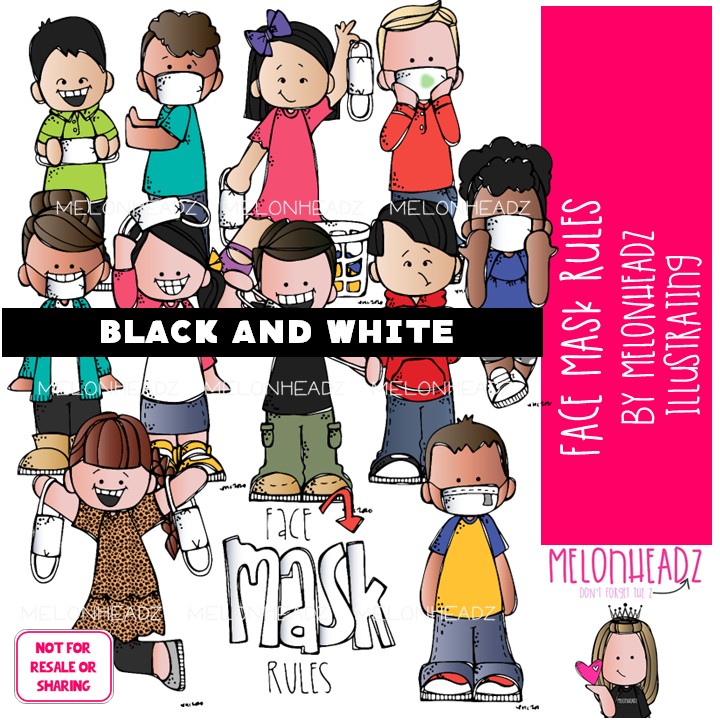 Face Mask Rules clip art, social distance, virus protection BLACK AND WHITE: This illustrated set contains all of the clip art images as shown in the preview picture. BLACK AND WHITE illustrations included.