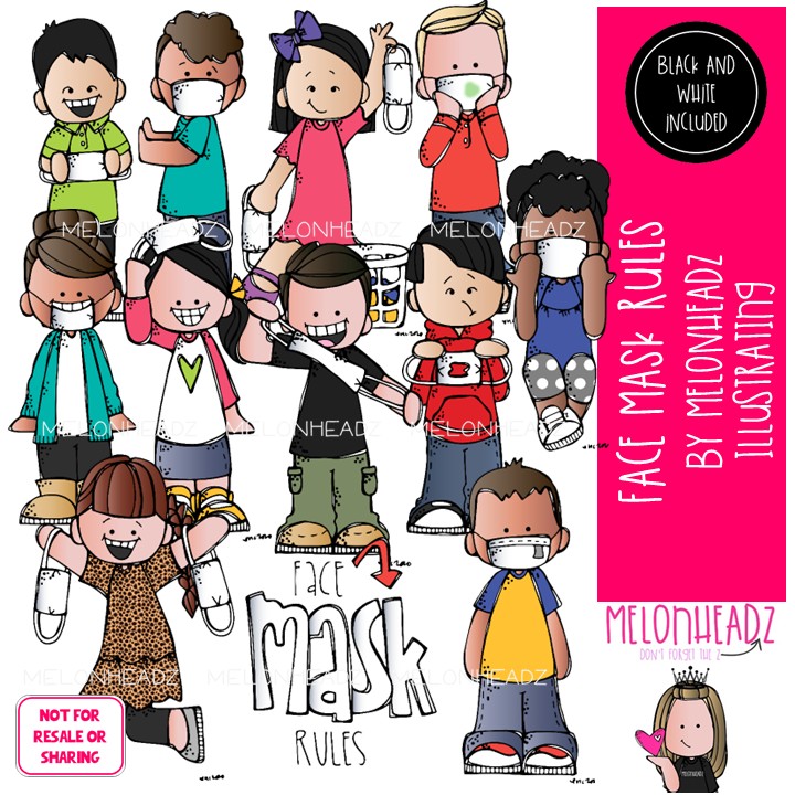 Face Mask Rules clip art, social distance, virus protection COMBO PACK: This illustrated set contains all of the clip art images as shown in the preview picture. COLORED and BLACK AND WHITE illustrations included.