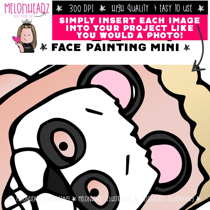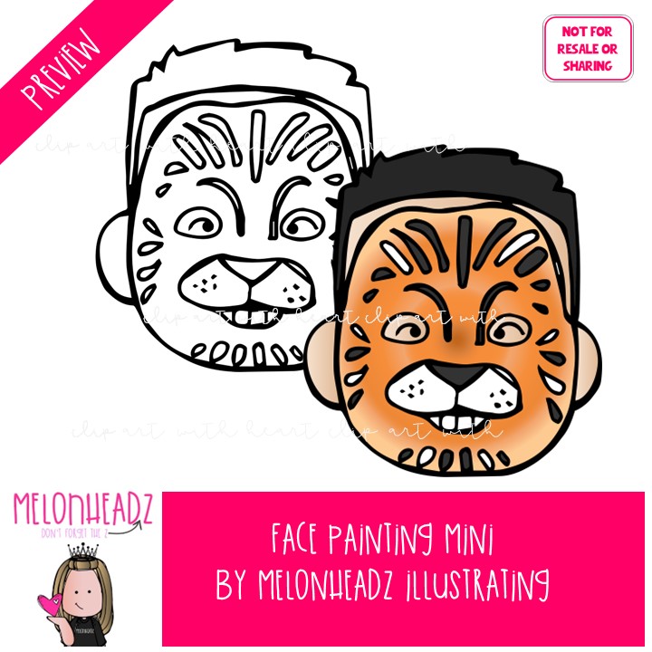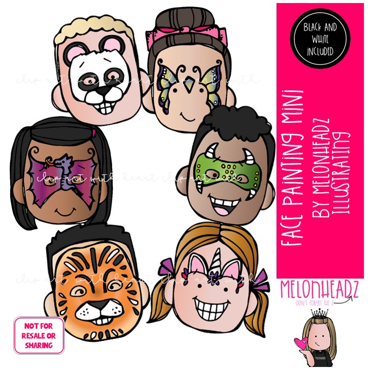 Face Painting clip art, Halloween, fair Mini: This illustrated set contains all of the clip art images as shown in the preview picture. COLORED and BLACK AND WHITE illustrations included.