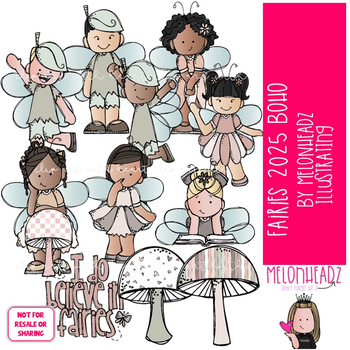 Fairies clip art Mushroom clip art Pixie clip art COLORED Version BOHO: This illustrated set contains all of the clip art images as shown in the preview picture. COLORED  illustrations only.
