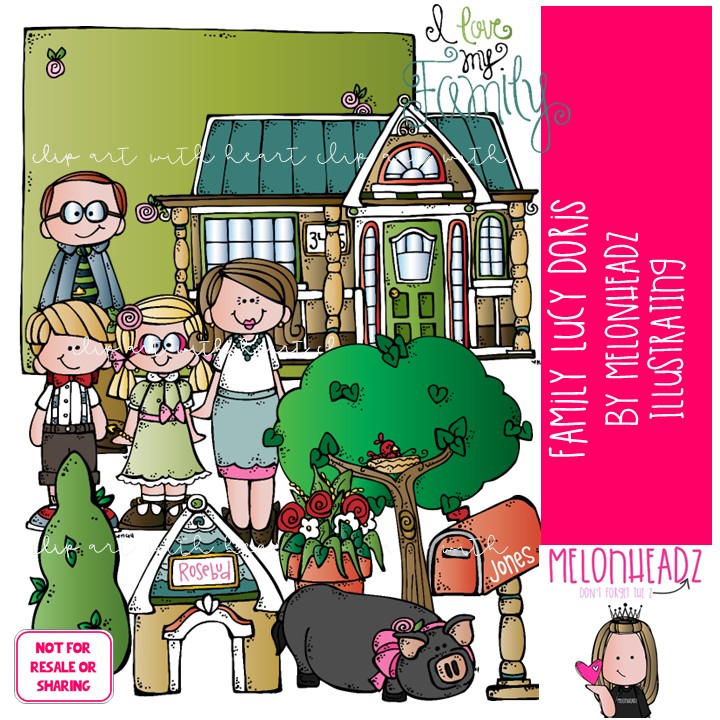 Family clip art, Lucy Doris, Melonheadz Characters COLORED Version