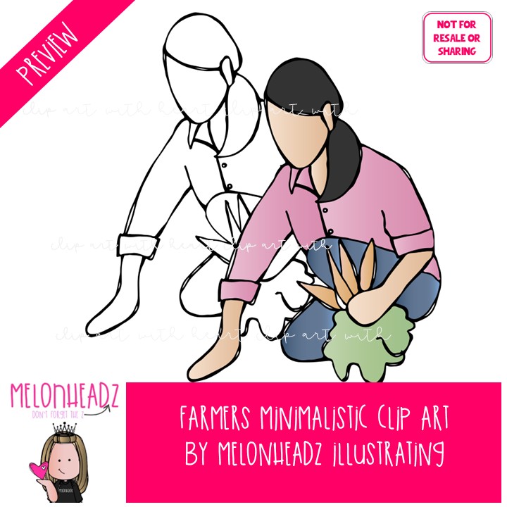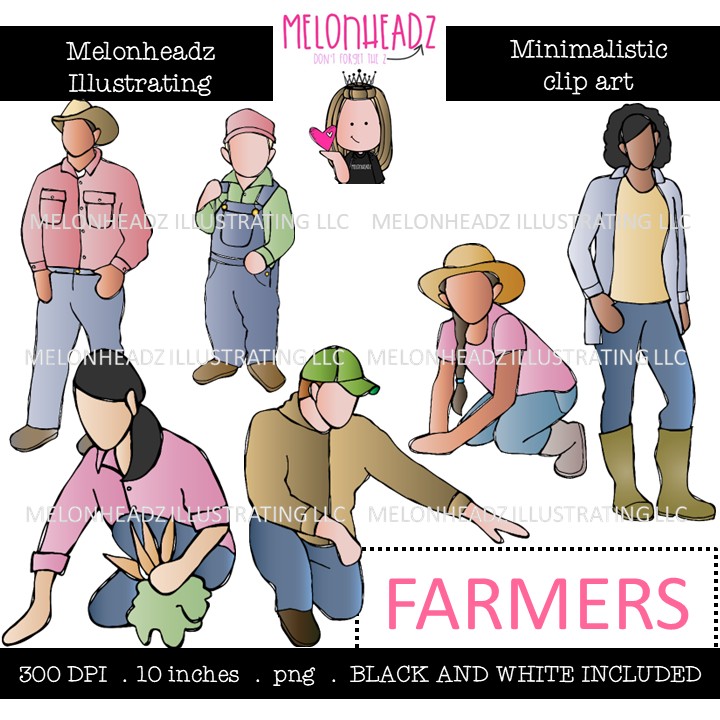 Farmers clip art, Minimal Style Mini: This illustrated set contains all of the clip art images as shown in the preview picture. COLORED and BLACK AND WHITE illustrations included.