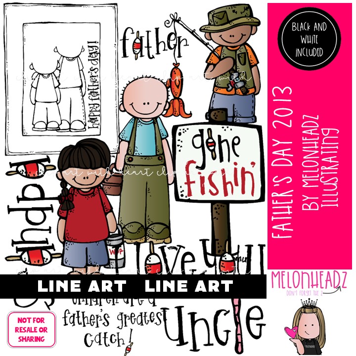 Father’s Day clip art / Printable 2013 Dad’s Day clip art LINE ART and BLACK AND WHITE: This illustrated set contains all of the clip art images as shown in the preview picture. BLACK AND WHITE and LINE ART illustrations included.