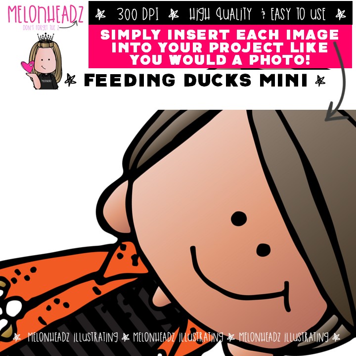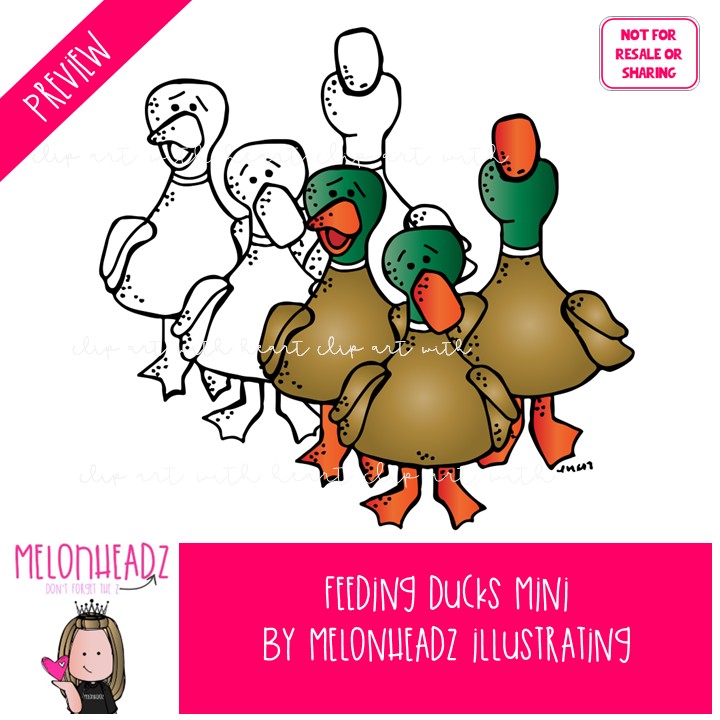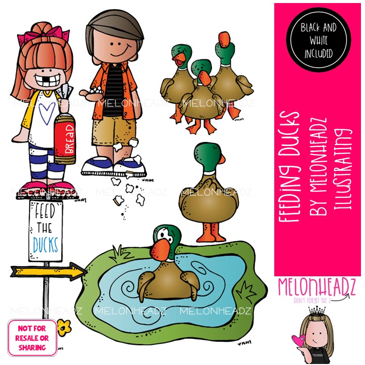 Feeding Ducks clip art, kidlettes, pond Mini: This illustrated set contains all of the clip art images as shown in the preview picture. COLORED and BLACK AND WHITE illustrations included.