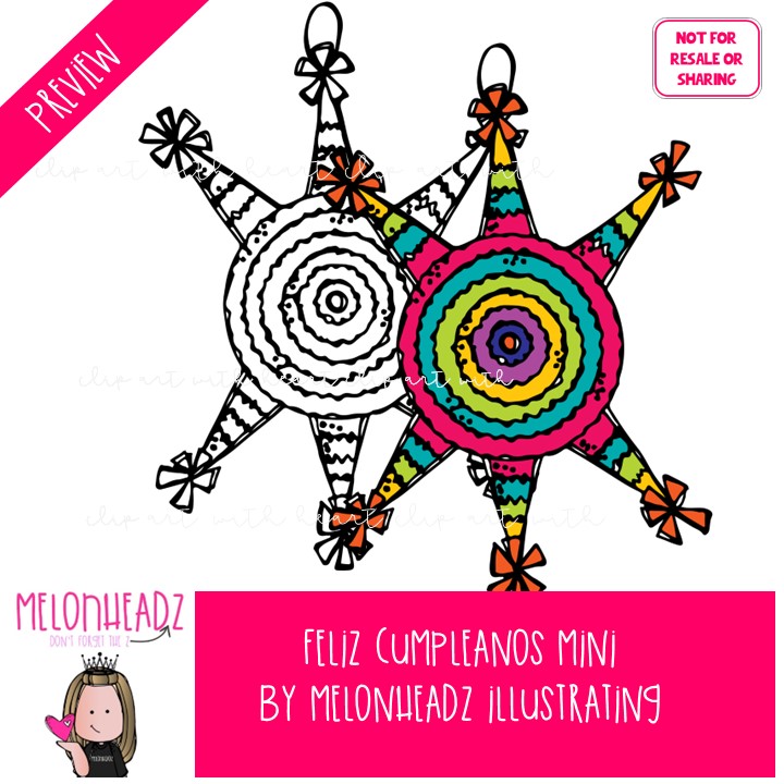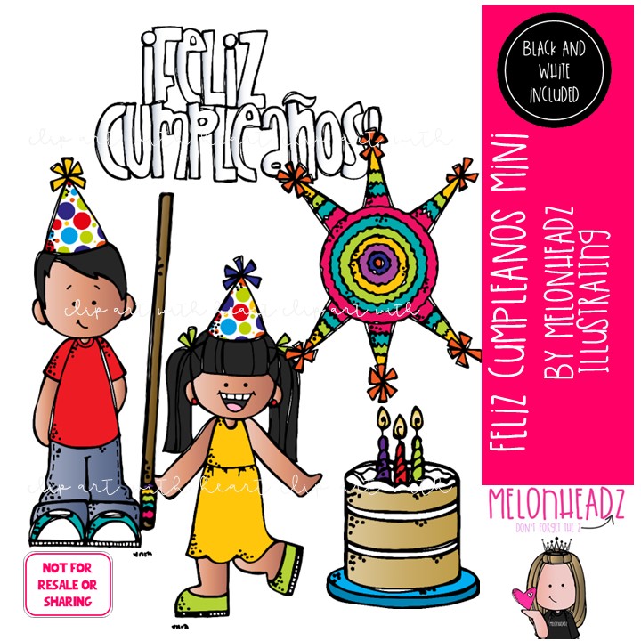 Feliz Cumpleanos clip art, birthday, pinata Mini: This illustrated set contains all of the clip art images as shown in the preview picture. COLORED and BLACK AND WHITE illustrations included.