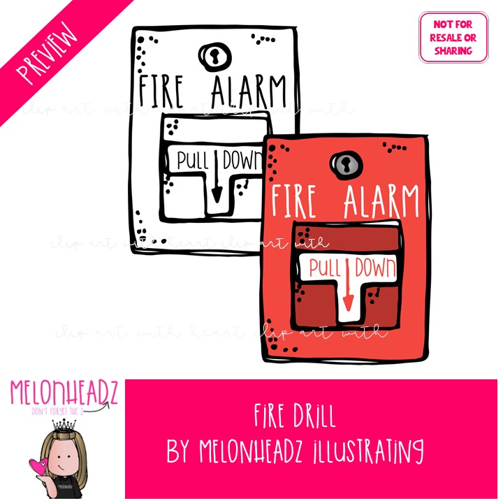 Fire Drill clip art, School Safety clip art, Fire Alarm clip art Mini: This illustrated set contains all of the clip art images as shown in the preview picture. COLORED and BLACK AND WHITE illustrations included.