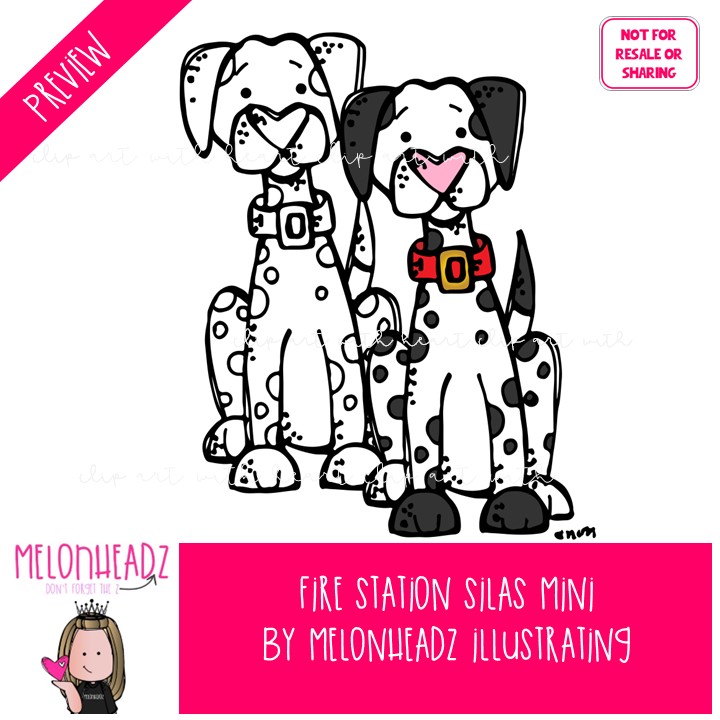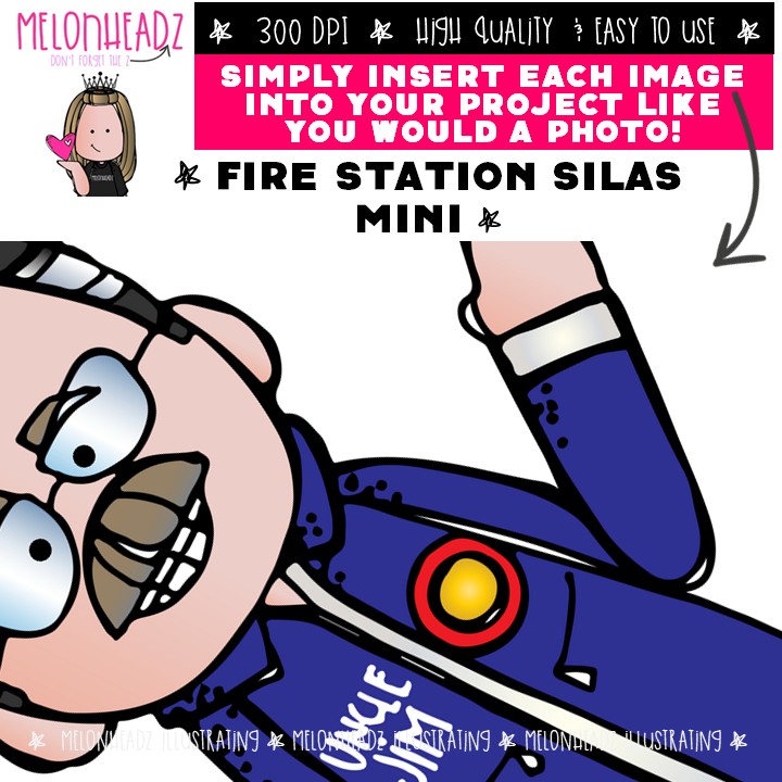 Fire Station clip art, Silas, Melonheadz Character Mini: This illustrated set contains all of the clip art images as shown in the preview picture. COLORED and BLACK AND WHITE illustrations included.