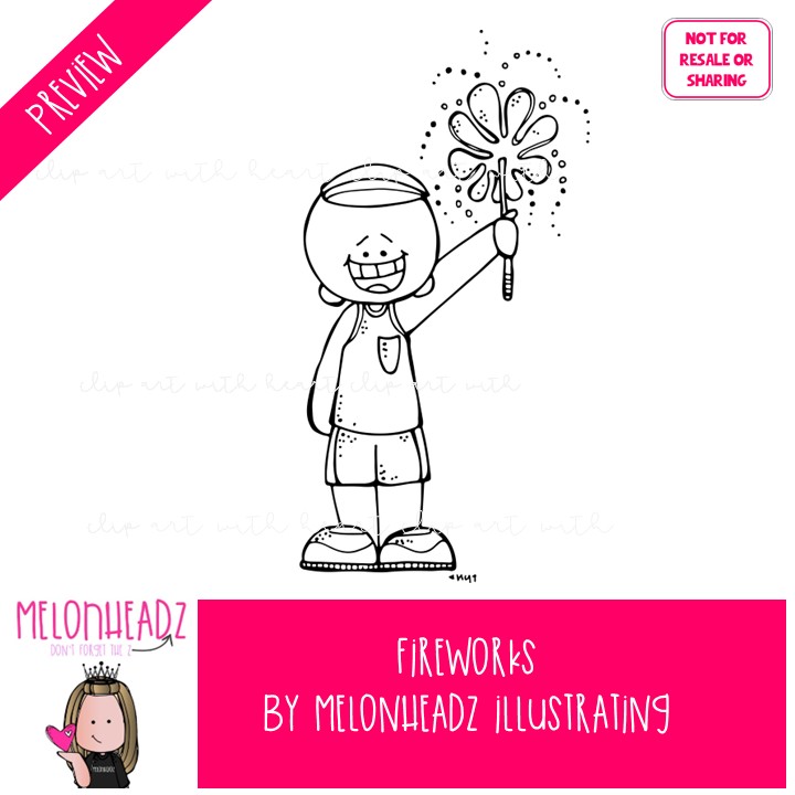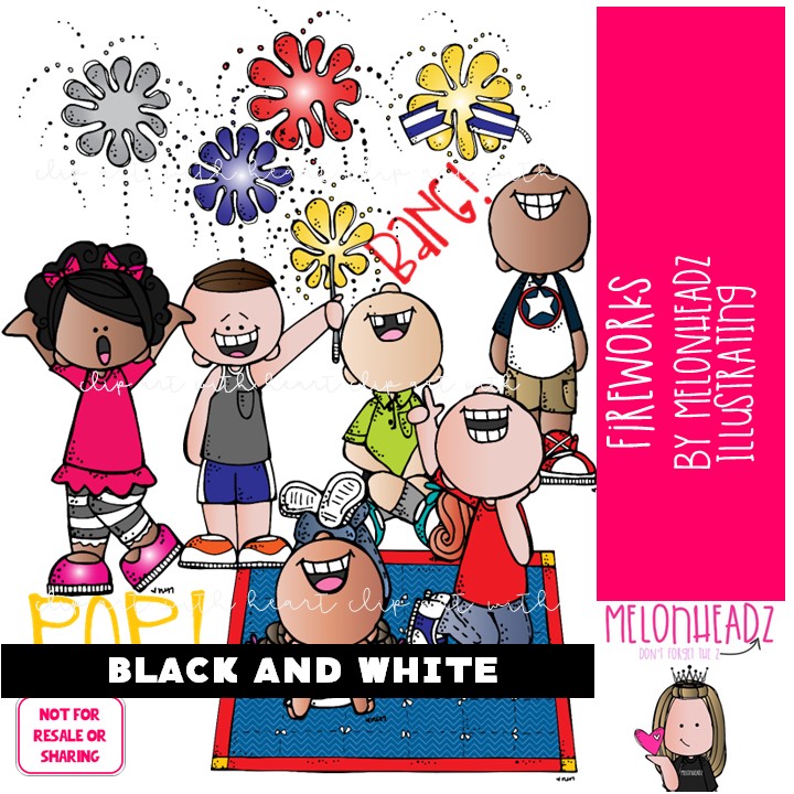 Fireworks clip art July 4th clip art Independence Day clip art BLACK AND WHITE: This illustrated set contains all of the clip art images as shown in the preview picture. BLACK AND WHITE illustrations only.