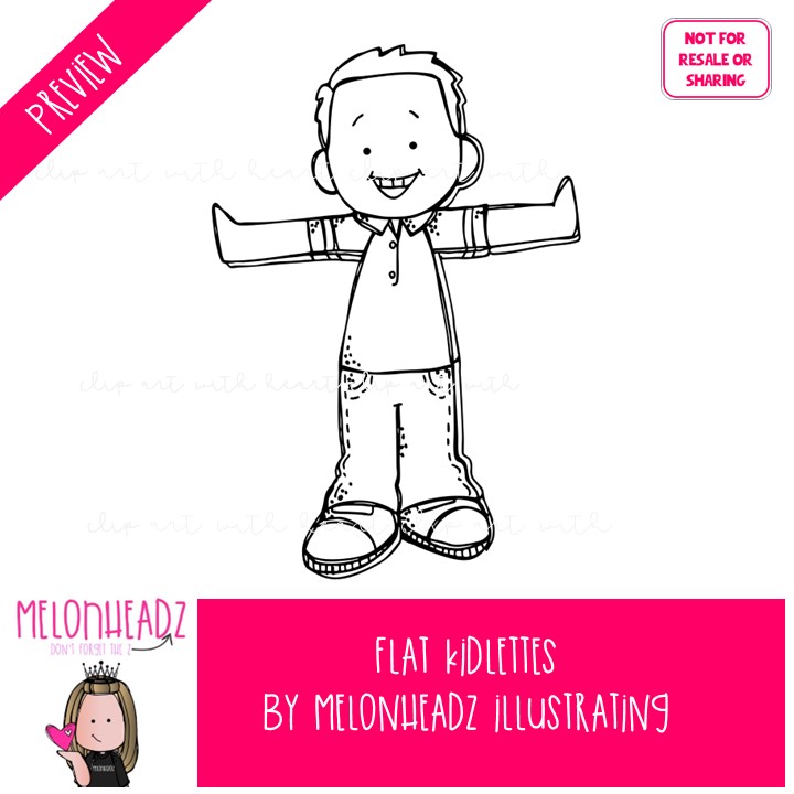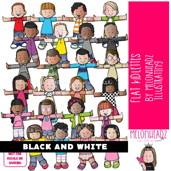 Flat Kidlettes clip art Flat Kids clip art Book Companion clip art GIANT set BLACK AND WHITE: This illustrated set contains all of the clip art images as shown in the preview picture. BLACK AND WHITE illustrations only.