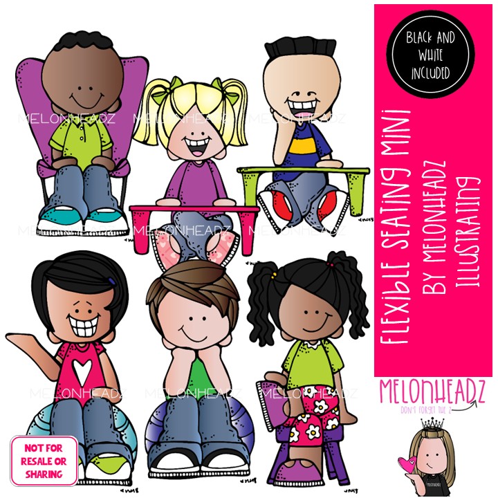 Flexible Seating clip art, classroom, yoga ball Mini: This illustrated set contains all of the clip art images as shown in the preview picture. COLORED and BLACK AND WHITE illustrations included.