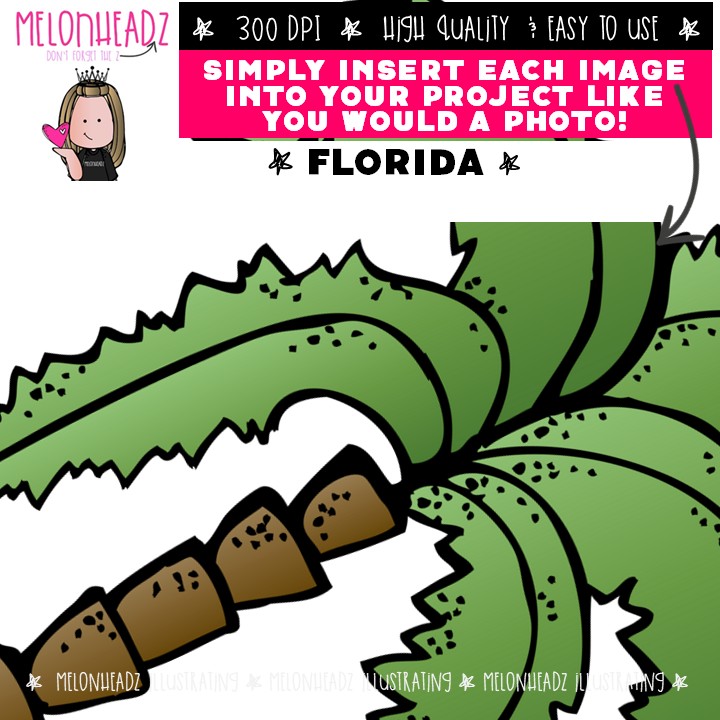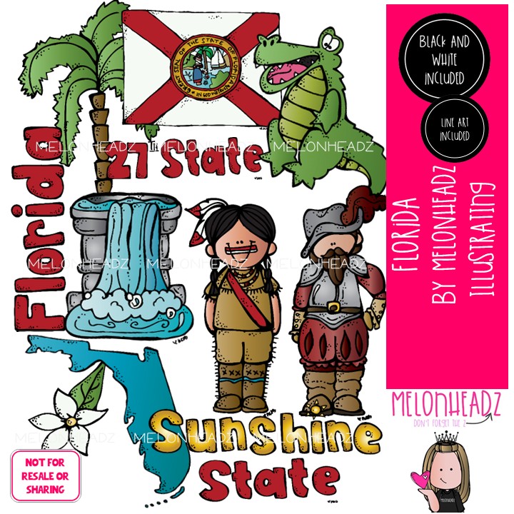 Florida clip art, state COMBO PACK: This illustrated set contains all of the clip art images as shown in the preview picture. COLORED, BLACK AND WHITE and LINE ART illustrations included.