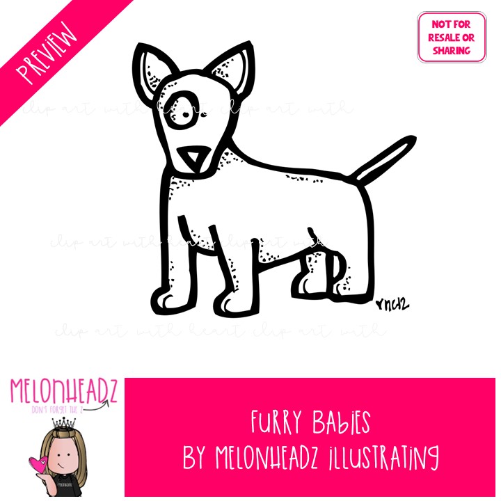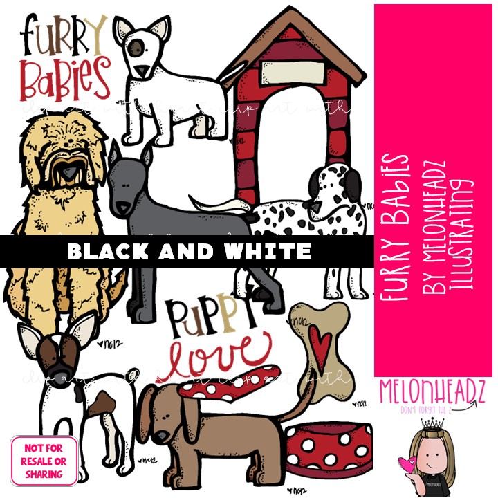 Furry Babies clip art, dog, pet BLACK AND WHITE