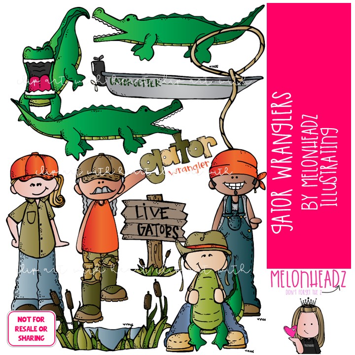 Gator Wrangler clip art Alligator clip art Hunting clip art COLORED Version: This illustrated set contains all of the clip art images as shown in the preview picture. COLORED illustrations included.