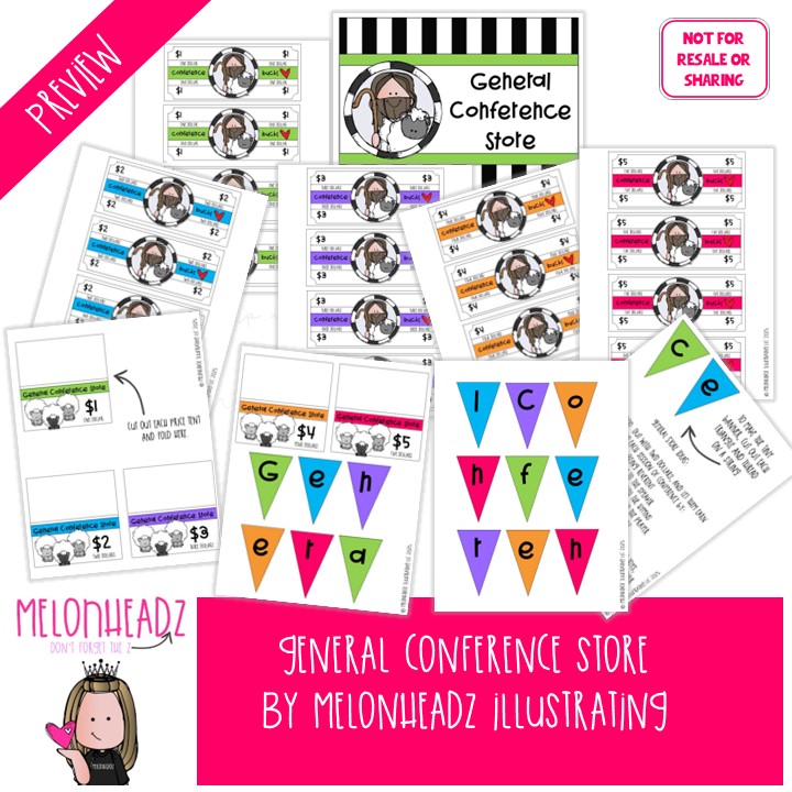 General Conference, Printable, Conference Bucks printable, LDS printable: This illustrated set contains all of the pages as shown in the preview picture.  BLACK AND WHITE and COLORED version included. 2 PDF files.
